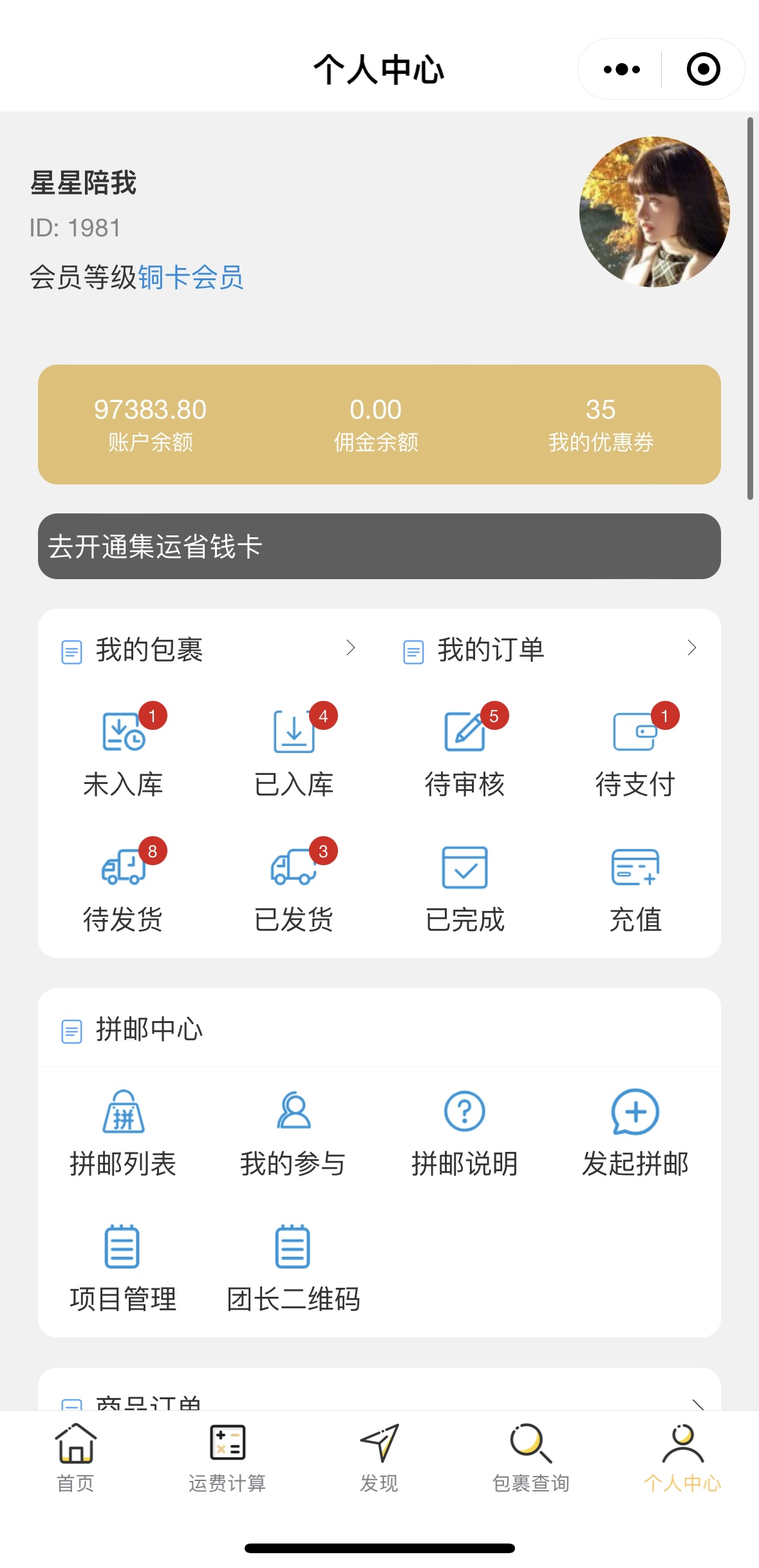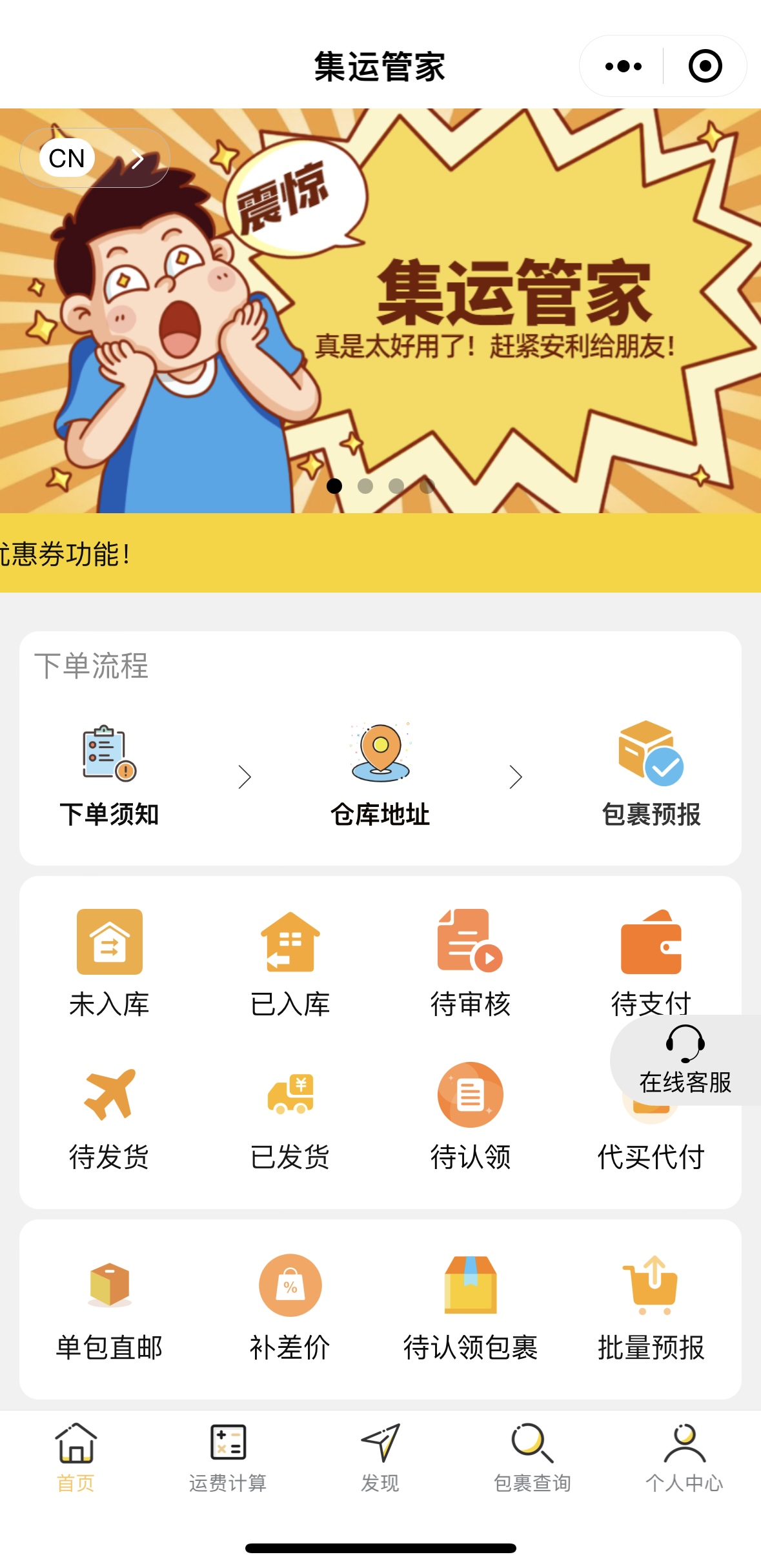 嗨轉寶集運小程序清晰明了的訂單管理系統:待打包、待支付、待發(fā)貨、貨到付款、已發(fā)貨一目了然